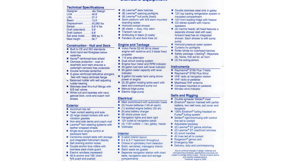 This 2007 Bavaria 42 is the perfect larger cruiser. As a three cabin model, she offers three large staterooms and two separate heads with showers. She is completely equipped with teak decks, autopilot, chart plotter, cockpit enclosure, central heating, flat panel tv, stereo, cruising spinnaker, dinghy, motor and much more.